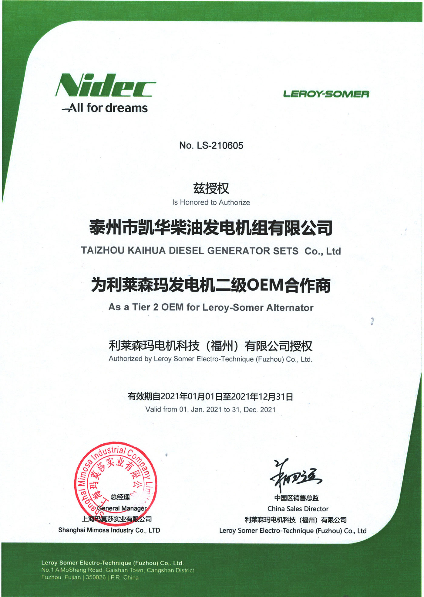 泰州市凱華柴油發(fā)電機(jī)組有限公司創(chuàng)建于2003年,是一家集柴油發(fā)電機(jī)組燃?xì)獍l(fā)電機(jī)組的研發(fā)、生產(chǎn)、銷售為一體的高新技術(shù)民營(yíng)企業(yè),公司座落于“漢唐古郡,淮海名區(qū)”,具有“鳳凰城”美稱的祥泰之州——江蘇省泰州市,地處中國(guó)經(jīng)濟(jì)最發(fā)達(dá)的長(zhǎng)三角經(jīng)濟(jì)圈,水陸空立體交通,地理位置十分優(yōu)越。公司目前注冊(cè)資本金11800萬(wàn)元人民幣,生產(chǎn)基地占地六十畝,現(xiàn)有各類高素質(zhì)員工一百多名,專業(yè)技術(shù)人員達(dá)46人,其中高級(jí)技術(shù)人員16人,年銷售額近6億元。 公司主營(yíng)產(chǎn)品:3~3000KW陸用柴油發(fā)電機(jī)組,15~600KW移動(dòng)拖車電站,12~1000KW船用應(yīng)急柴油發(fā)電機(jī)組,各種靜音型、中高壓、多機(jī)并聯(lián)、燃?xì)獾忍胤N機(jī)組以及進(jìn)口系列柴油發(fā)電機(jī)組,可滿足不同客戶的一切電力需求,還可滿足用戶不同電壓、不同頻率的要求。凱華公司是康明斯品牌的授權(quán)代理商,專業(yè)生產(chǎn)供應(yīng)康明斯柴油發(fā)電機(jī)組。